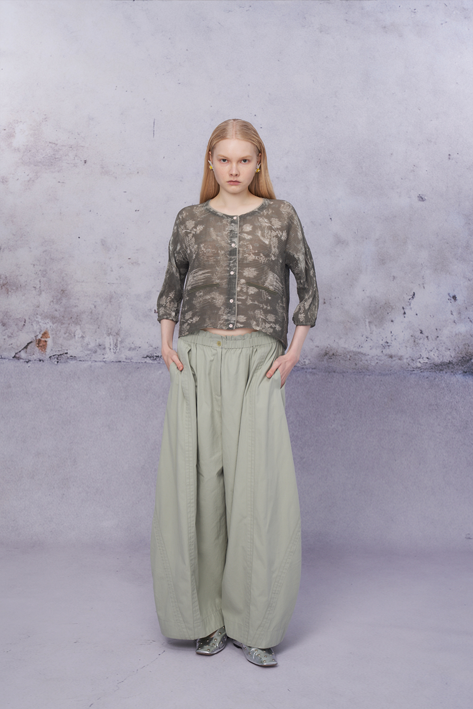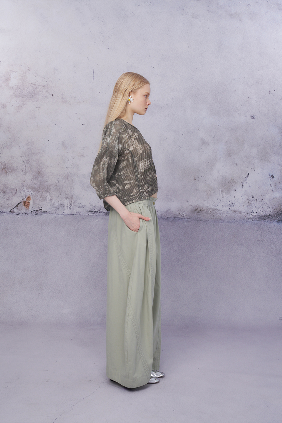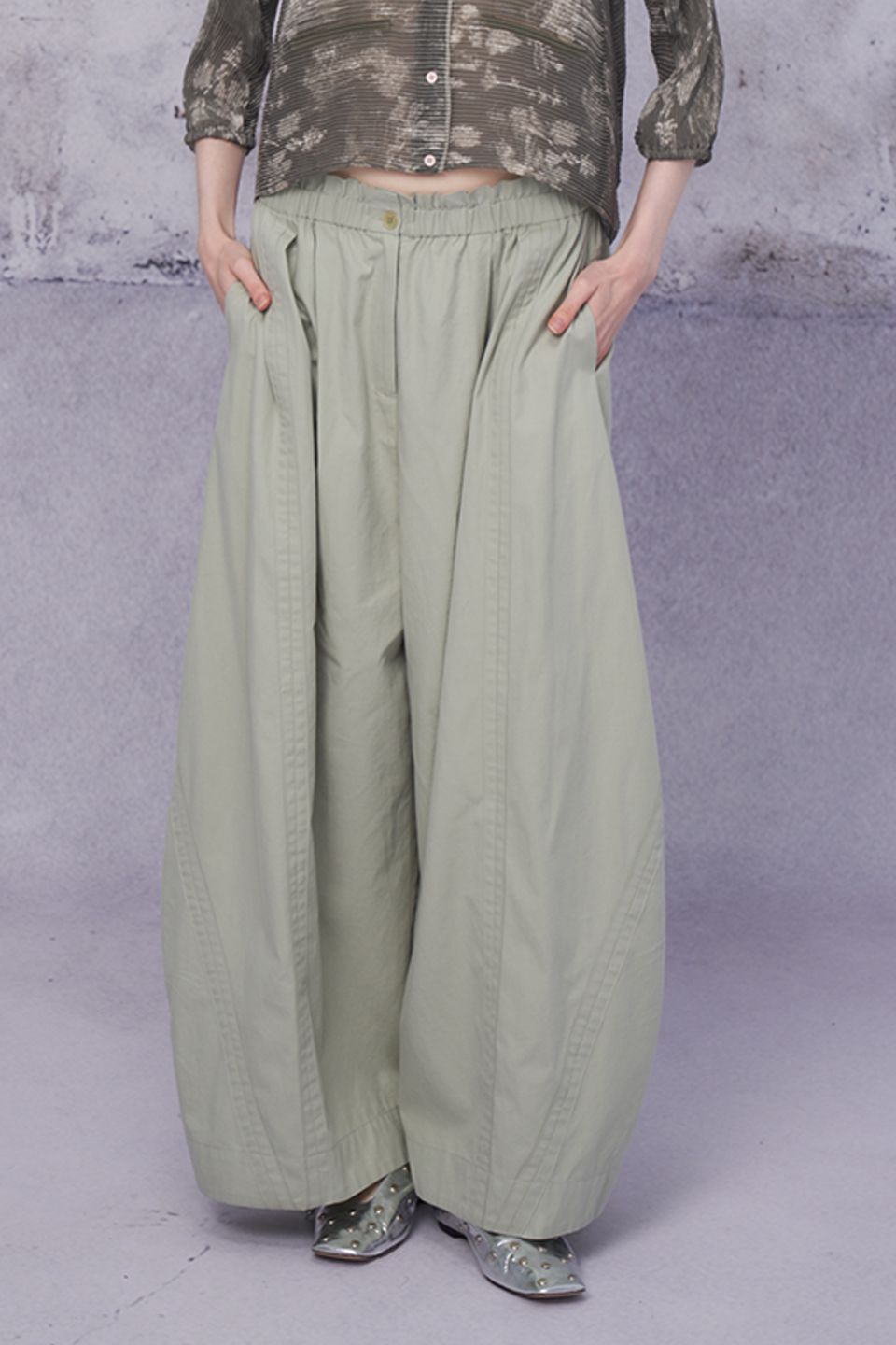 立體邊條大寬褲
