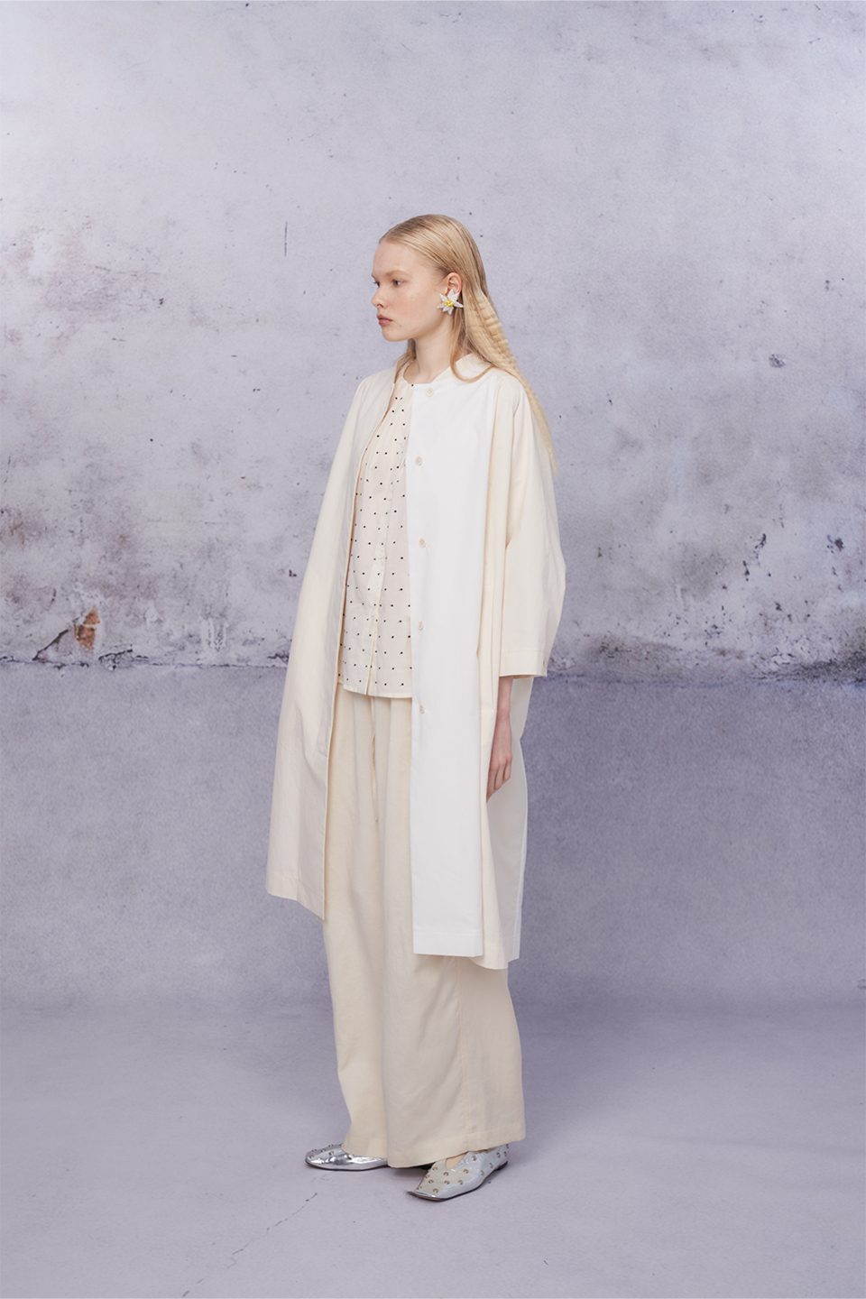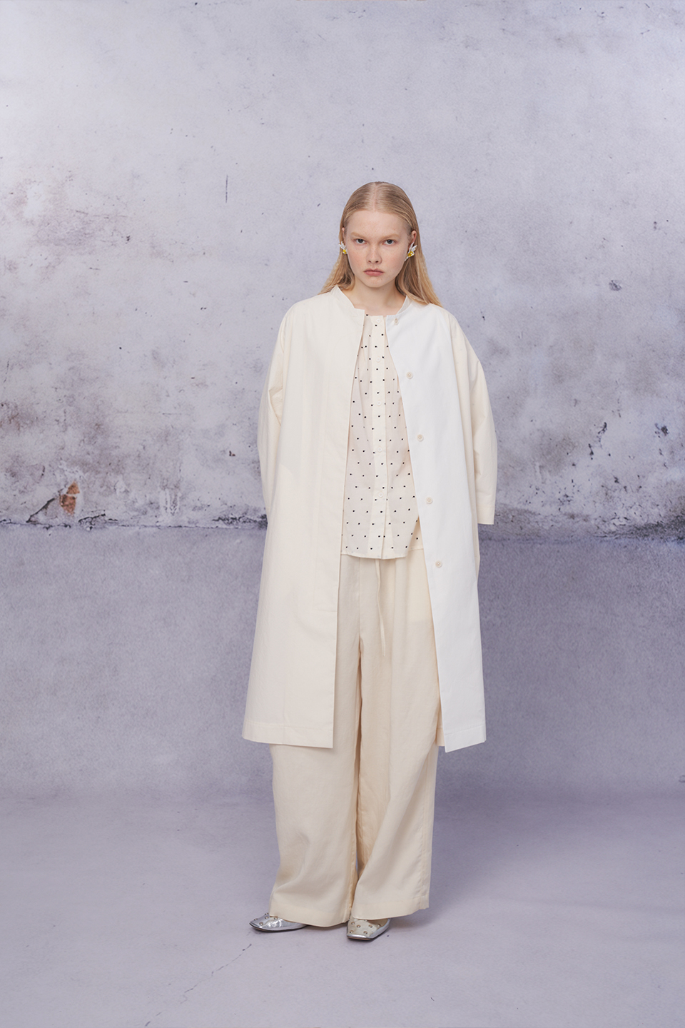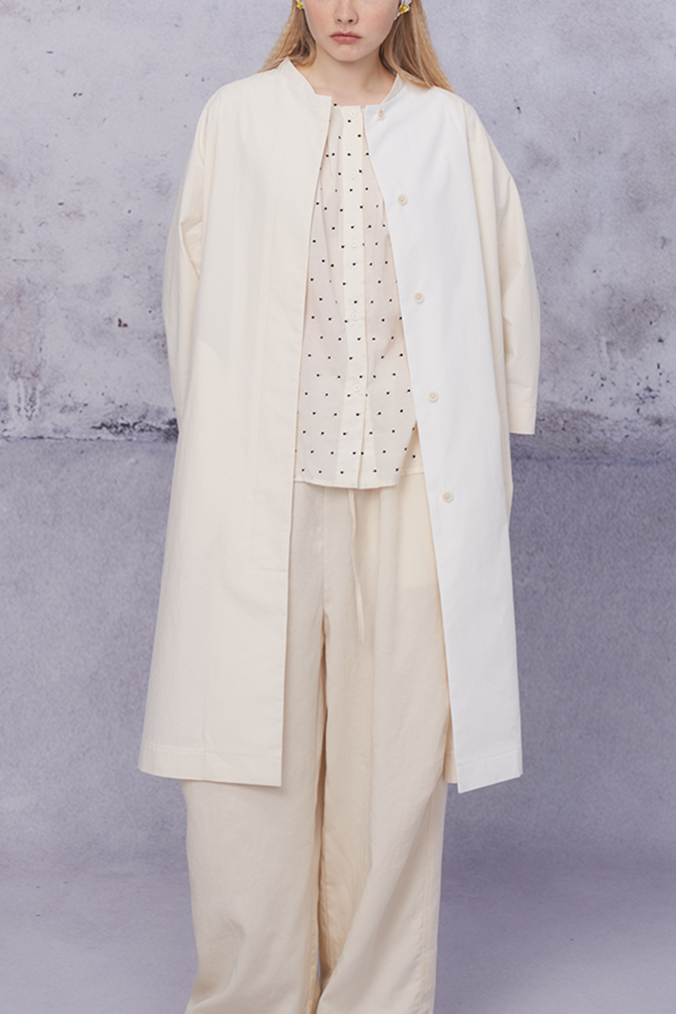 配色剪接長版外套